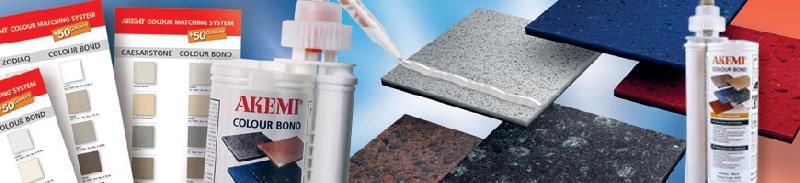 Sistemul complet, cu armonizare coloristică pentru piatra artificială constă din AKEMI COLOUR BOND (adeziv cu 2 componente aflate în cartuşe) şi din silicon special AKEMI Composil (material de etanşare cu un component). Cele două produse sunt cele mai optime atât din punct de vedere tehnic, cât şi datorită gamei uriaşe de peste 50 culori potrivite pentru toate tipurile de piatră artificială ale producătorilor de renume.